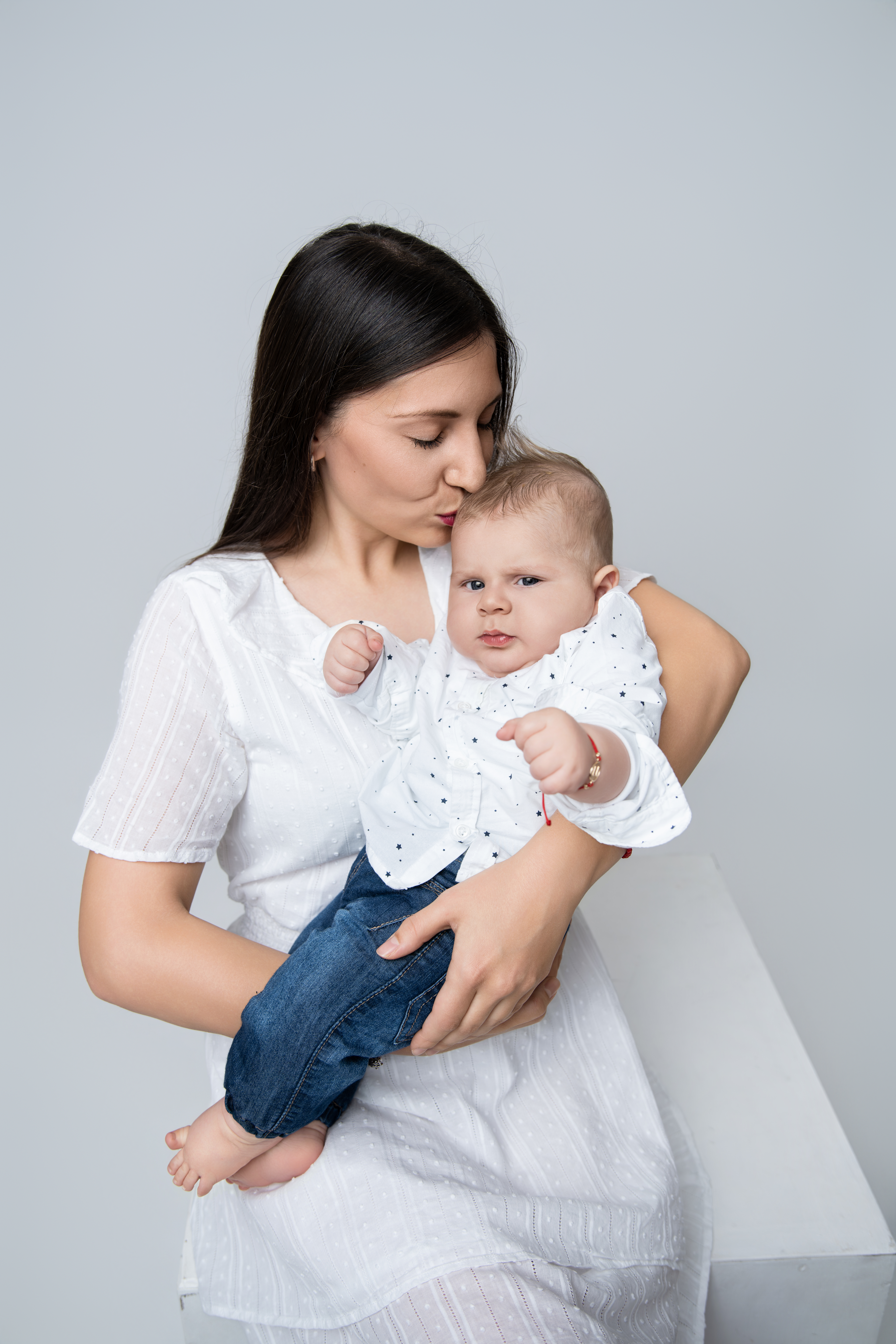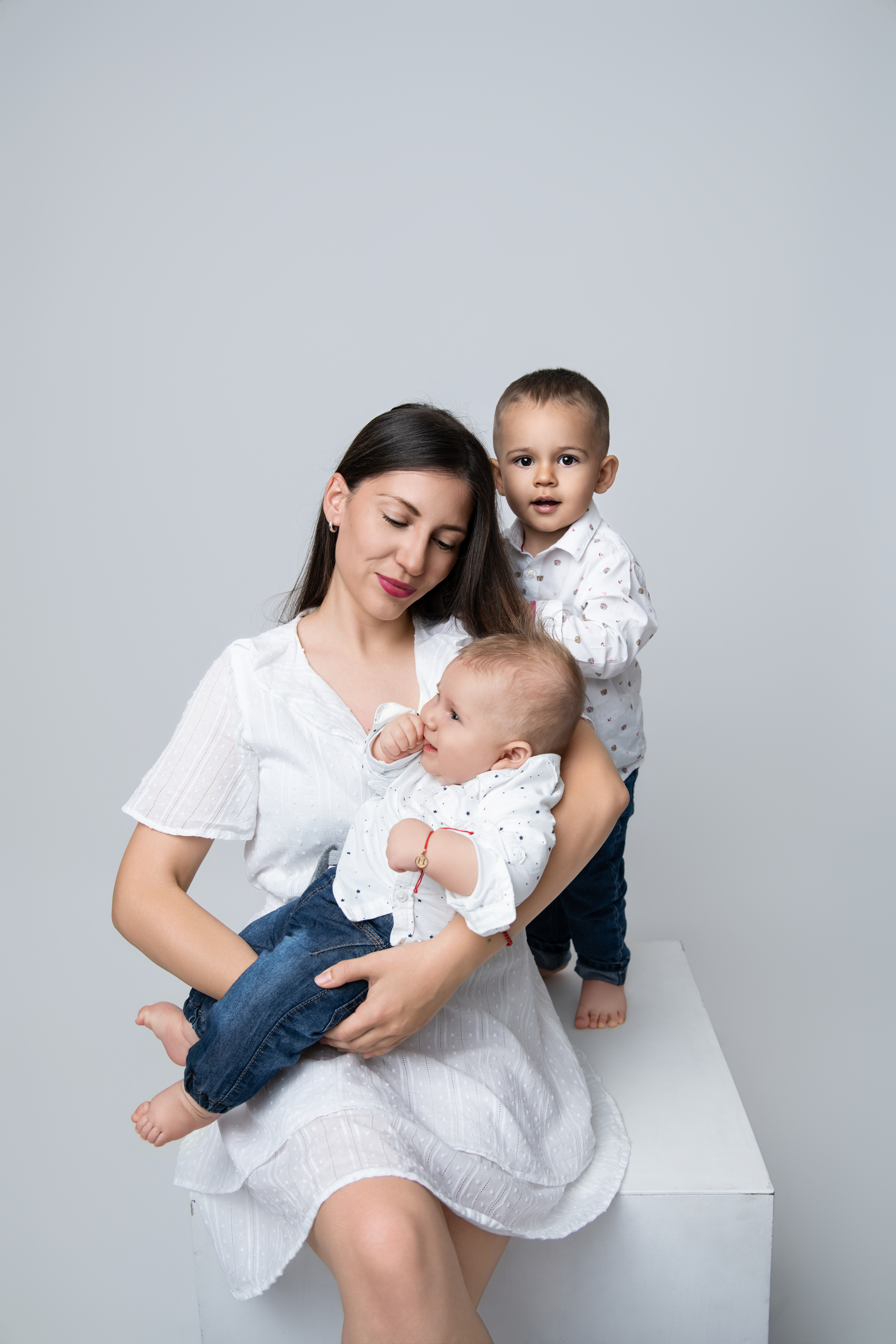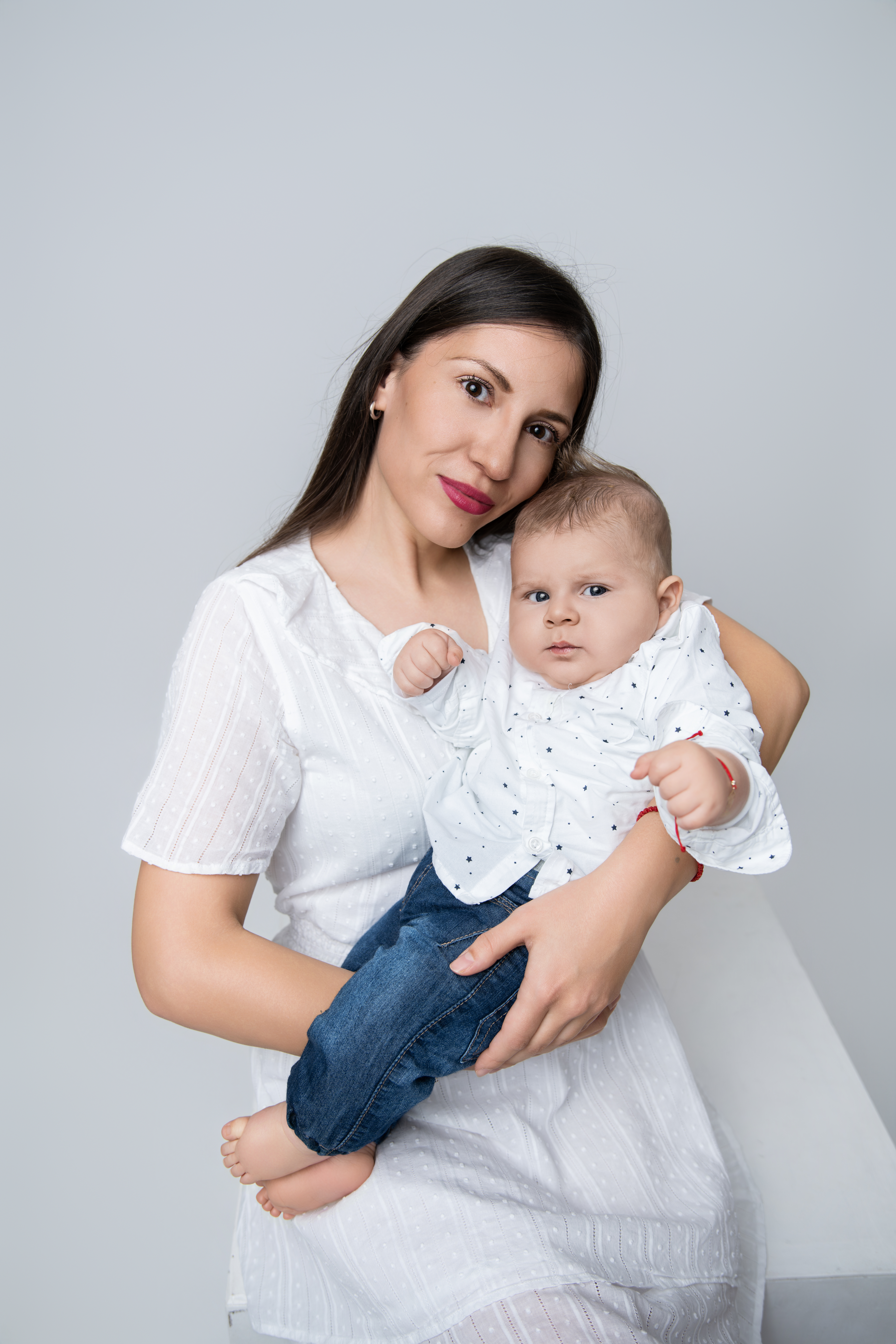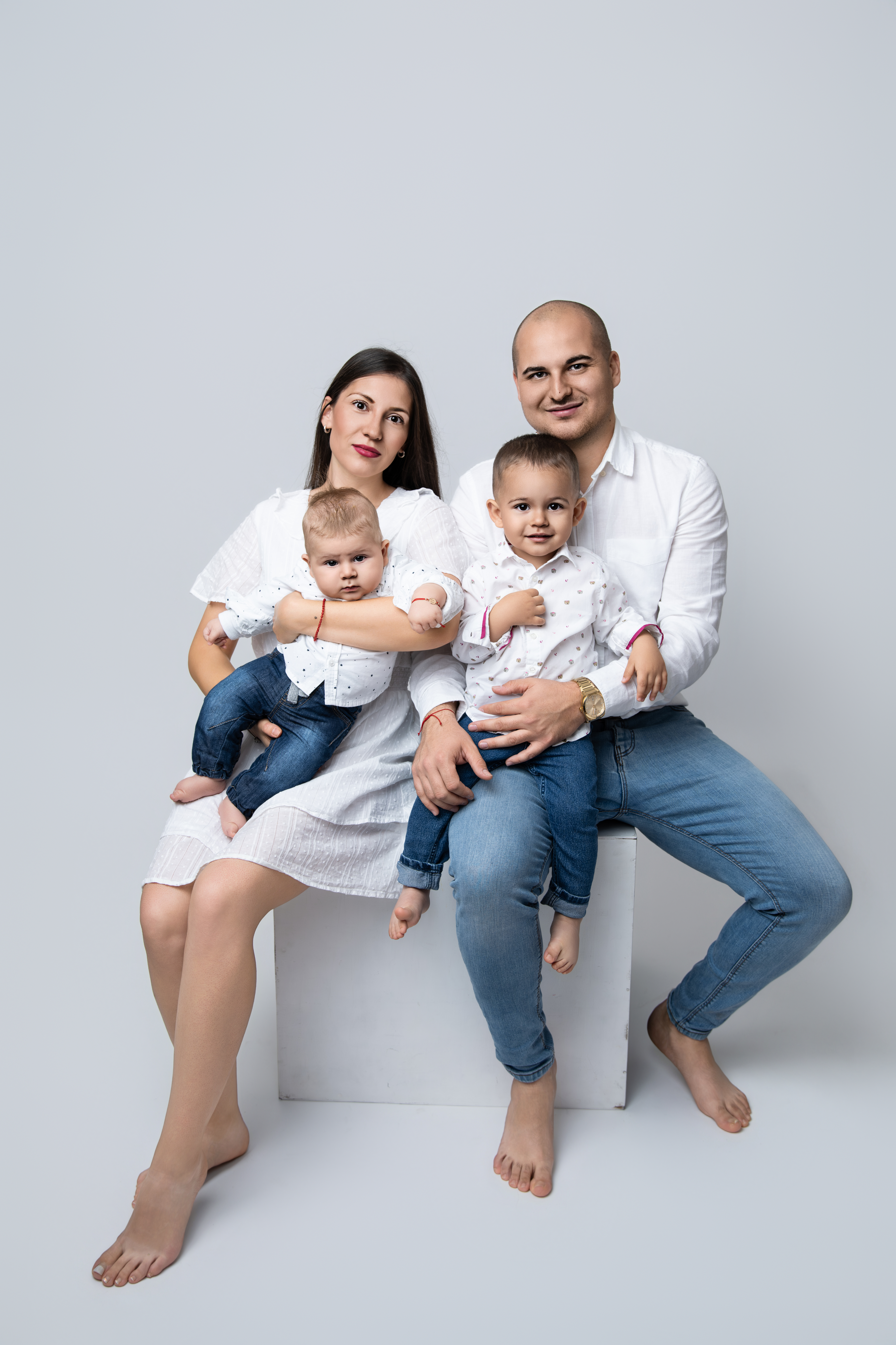 Изчистена и стилна фотосесия на бял фон.